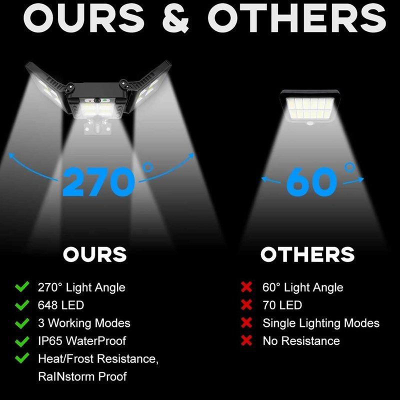 Our Solar LED Light has 3 x Solar Panels  , features super-bright LEDs that will light up the dark in a matter of seconds.