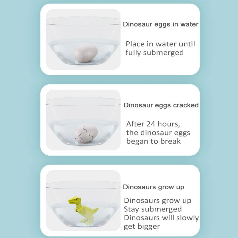 • Place the dinosaur egg in the water fully submerged and wait 24 hours for the dinosaur to crack open its shell. Keep waiting 72 hours for the dinosaur to grow bigger.
