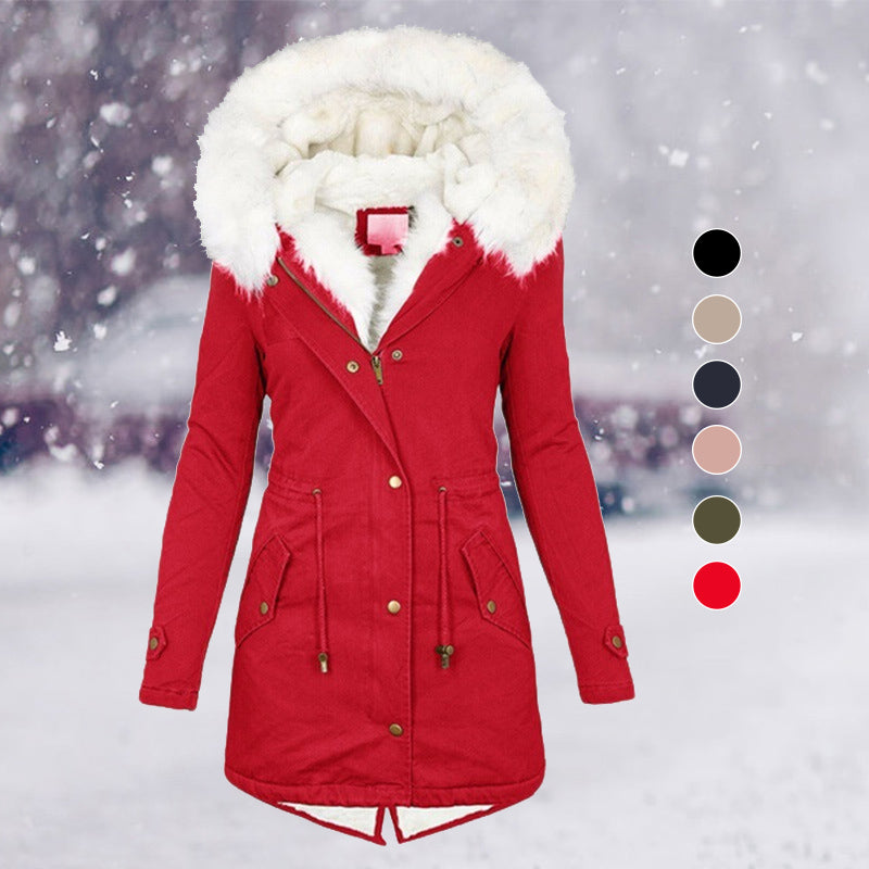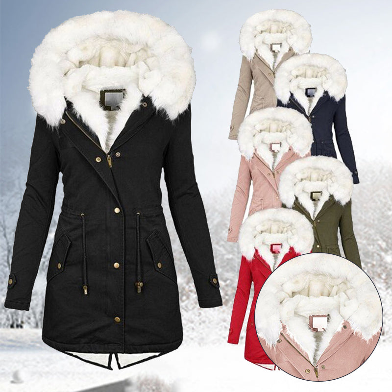 Women Winter Parka Coat Fur Collar Hooded Jacket