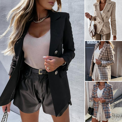 Women's Fashion Long Sleeve Suit Plaid Jacket