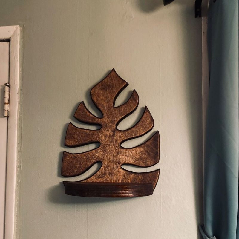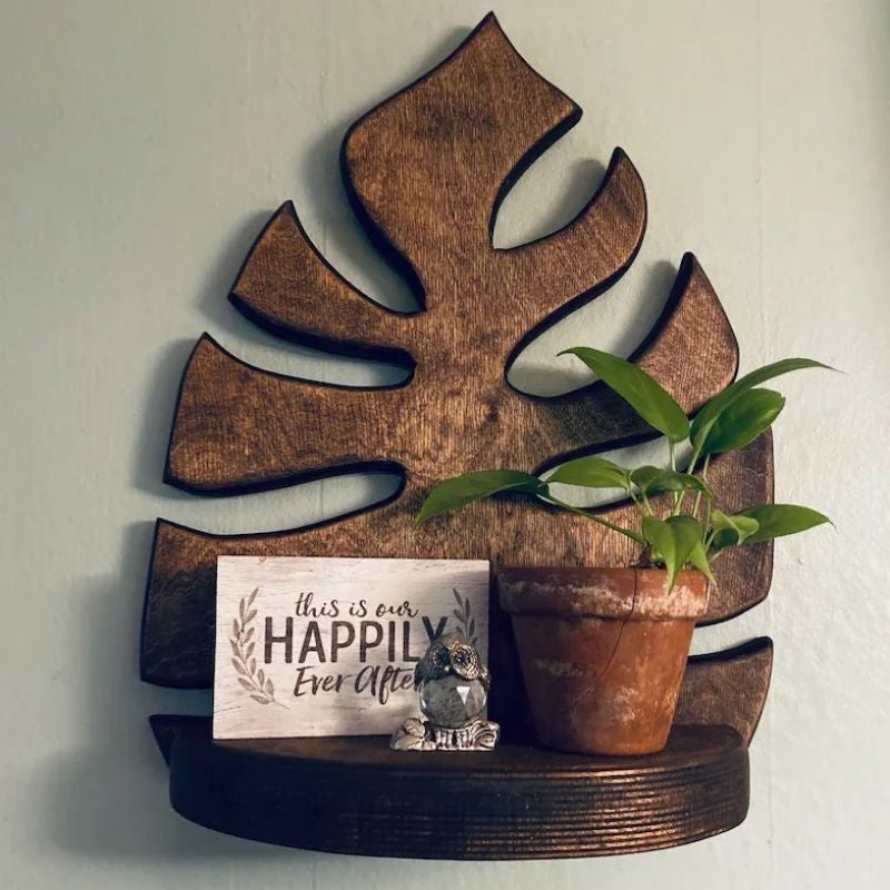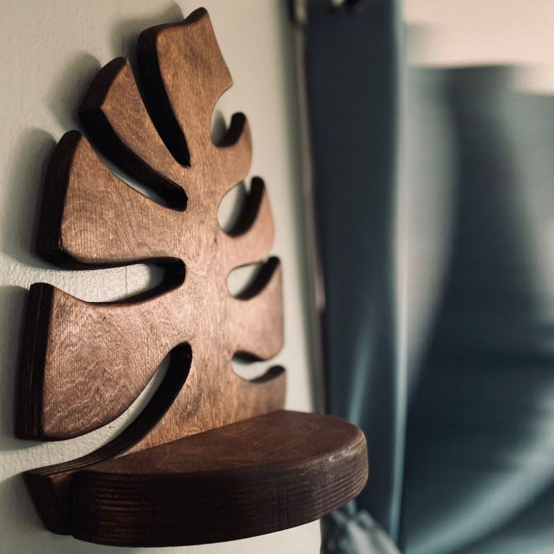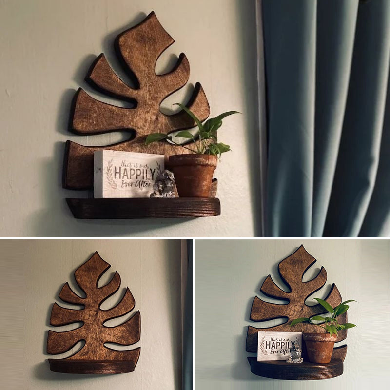 Wooden Monstera Wall Shelf
